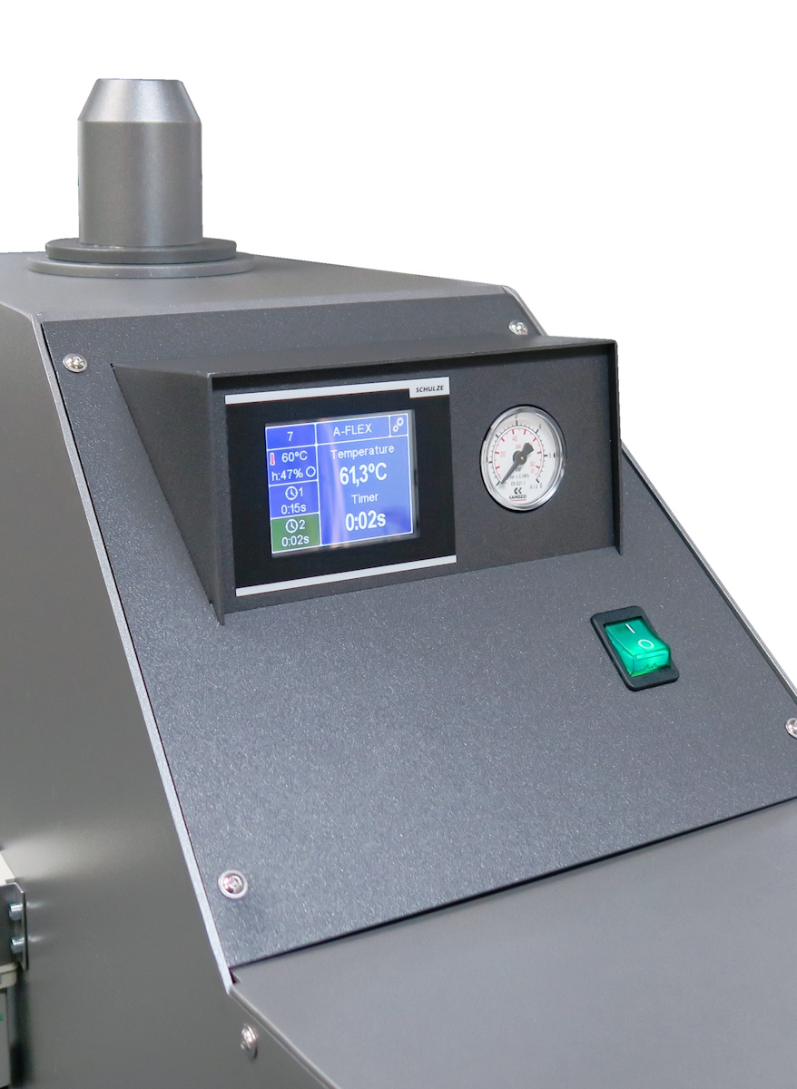• Nowoczesna prasa pneumatyczna umożliwia pracę w cyklu automatycznym - po przyciśnięciu włącznika prasa automatycznie zamyka się i otwiera po określonym czasie
