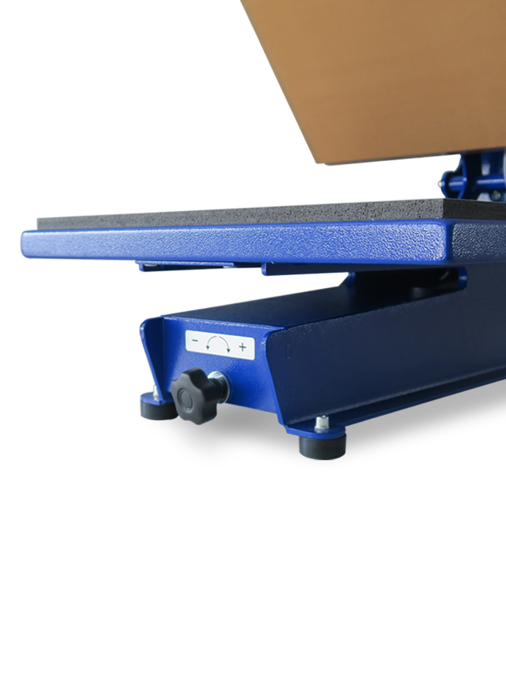 • Prasa do sublimacji i termotransferu jest wyposażona w wyświetlacz i przyciski umożliwiające sterowanie czasem i temperaturą wgrzewania; regulowanie naciskiem prasy odbywa się przy pomocy specjalnego pokrętła