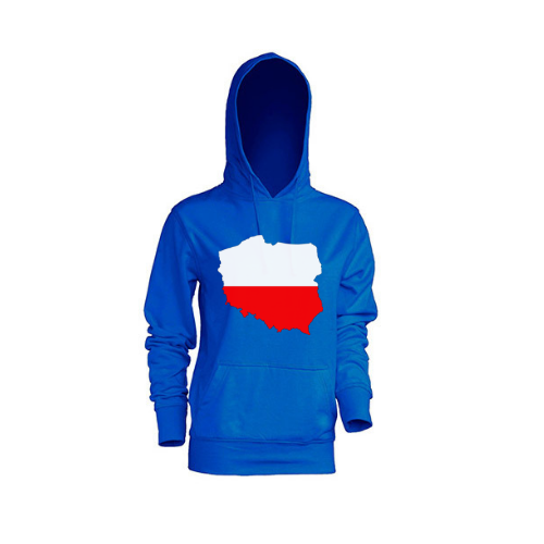 Gładka, niebieska bluza damska z kapturem do nadruku (kangurówka)