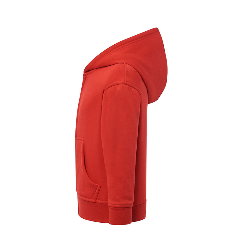 • Rozpinana bluza dresowa z kapturem dla dzieci pod nadruk o gramaturze 290 g/m2 składa się w 35% z bawełny i 65% z poliestru;