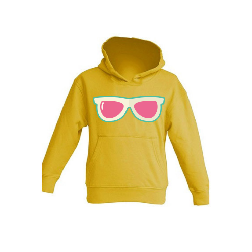 Gładka, żółta bluza dziecięca z kapturem do nadruku (kangurówka)
