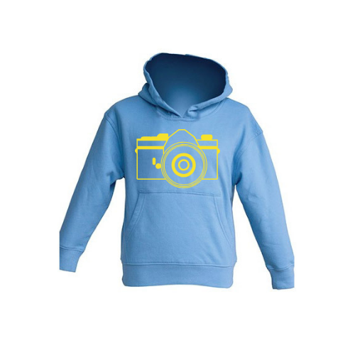 Gładka, błękitna bluza dziecięca z kapturem do nadruku (kangurówka)