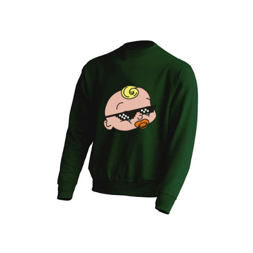 Gładka, zielono-butelkowa bluza męska o klasycznym kroju typu Basic