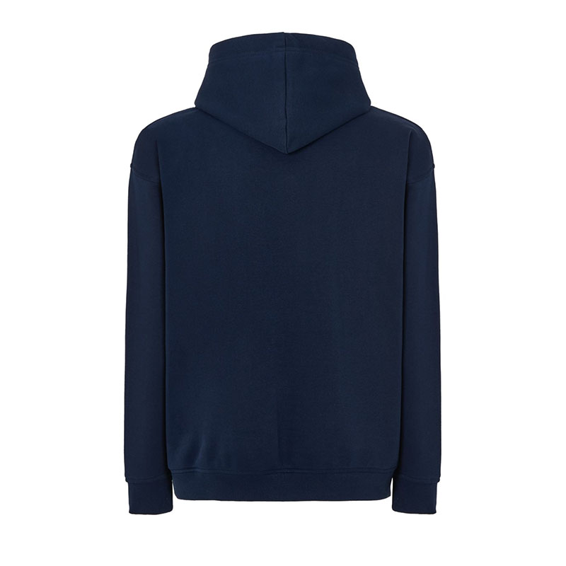Gładka, granatowa bluza męska z kapturem pod nadruk z naszytą kieszenią (kangurka/CVC) typ OVERSIZE