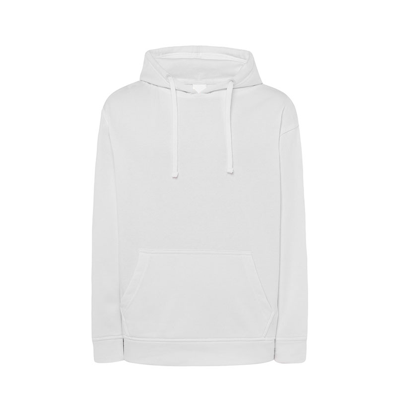 • Męskie wciągane bluzy z kapturem do naniesienia dowolnych nadruków posiadają ściągacze wzmocnione lycrą