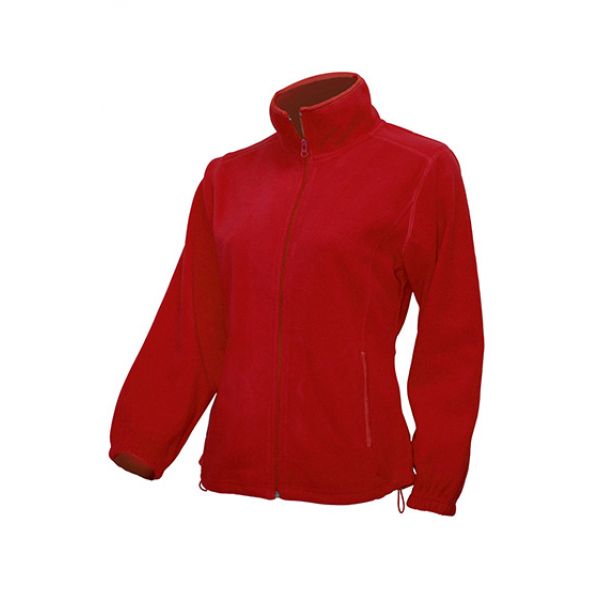 Rozpinana czerwona bluza polarowa ze stójką to świetny pomysł na uniwersalny strój zarówno na wieczorny spacer jak i w chłodne dni do pracy.