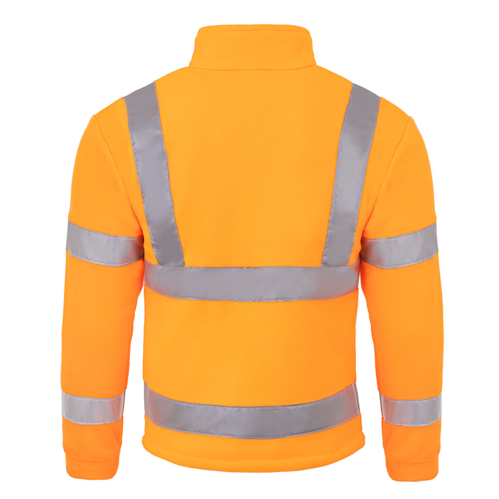 Rozpinana pomarańczowa neonowa bluza polarowa z odblaskowymi wstawkami to świetne połączenie ciepła i bezpieczeństwa. Ważną cecha produktu są odblaskowe taśmy z certyfikatem. Bluza odblaskowa sprawdzi się nie tylko do prac drogowych, ale zapewni także dobrą widoczność nawet na 150m podczas spaceru lub drogi do pracy.