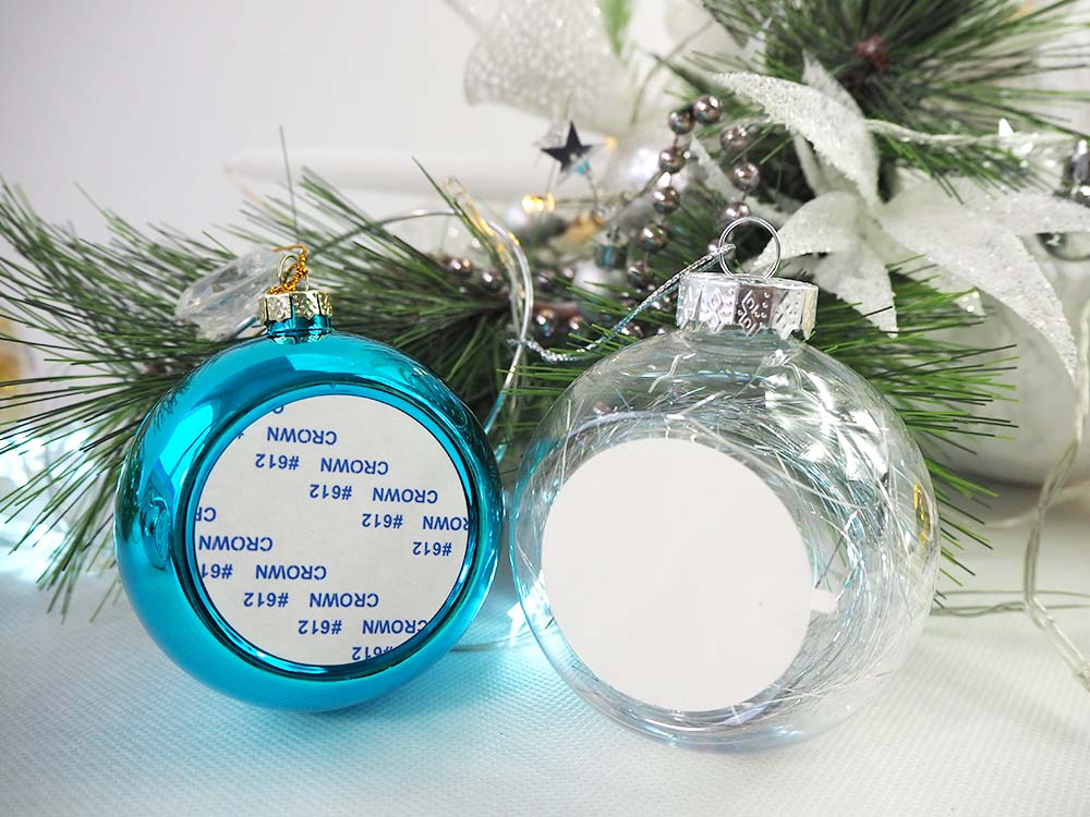 • Błyszcząca bombka choinkowa posiada specjalne pole, przystosowane do nadruku metodą sublimacji.
