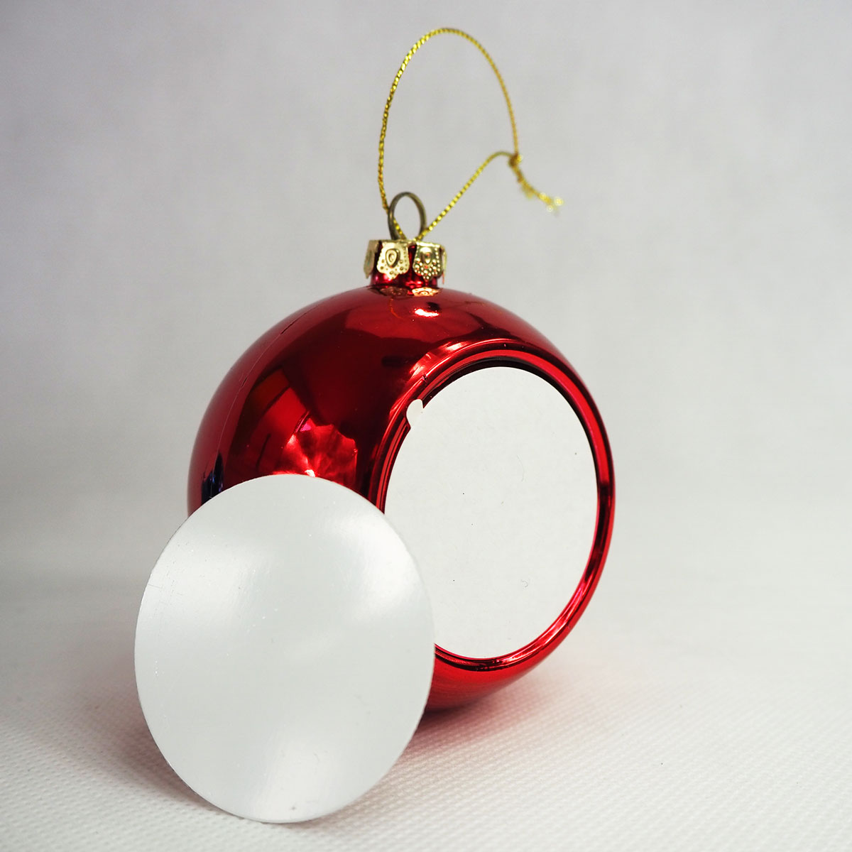 • Błyszcząca bombka choinkowa posiada specjalne pole, przystosowane do nadruku metodą sublimacji.