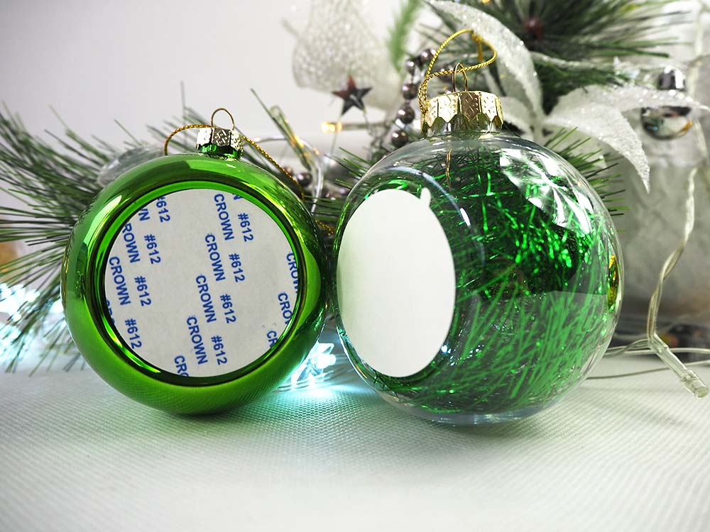 • Błyszcząca bombka choinkowa posiada specjalne pole, przystosowane do nadruku metodą sublimacji.