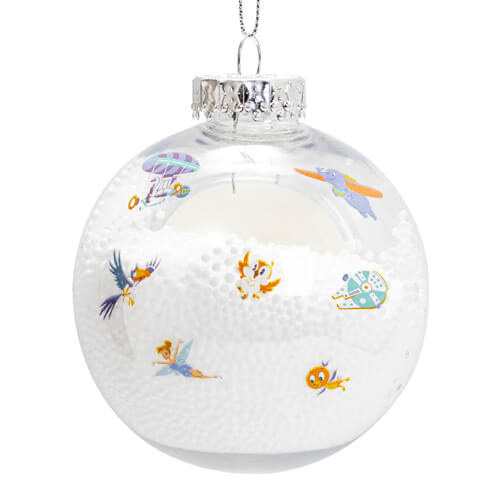 Przezroczysta bombka ze śniegiem w środku i postaciami z kreskówek - do sublimacji