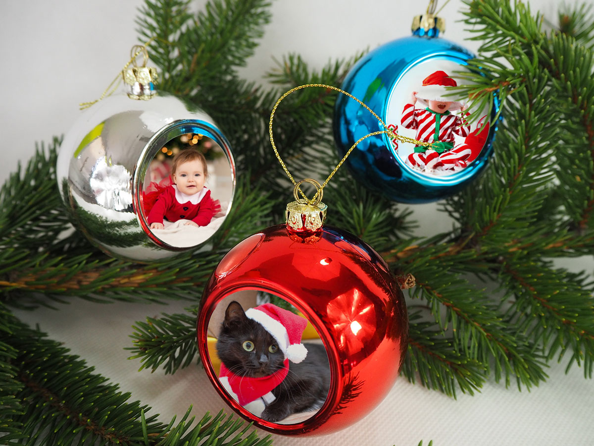 • Bombka ze zdjęciem jest zaopatrzona w złoty sznureczek, dzięki któremu łatwo zawiesić element dekoracyjny w dowolnym miejscu, np. na choince, w oknie lub przy żyrandolu, szybko wprowadzając świąteczny nastrój do swojego domu
