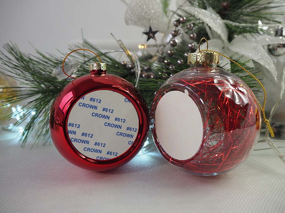 • Błyszcząca bombka choinkowa posiada specjalne pole, przystosowane do nadruku metodą sublimacji.