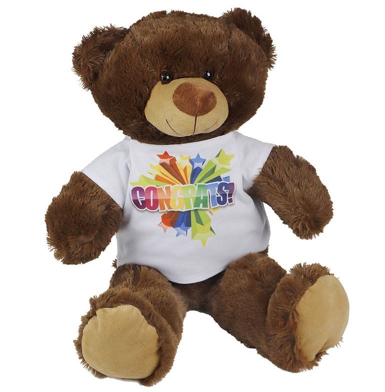Brązowy-ciemny pluszowy miś z koszulką do sublimacji