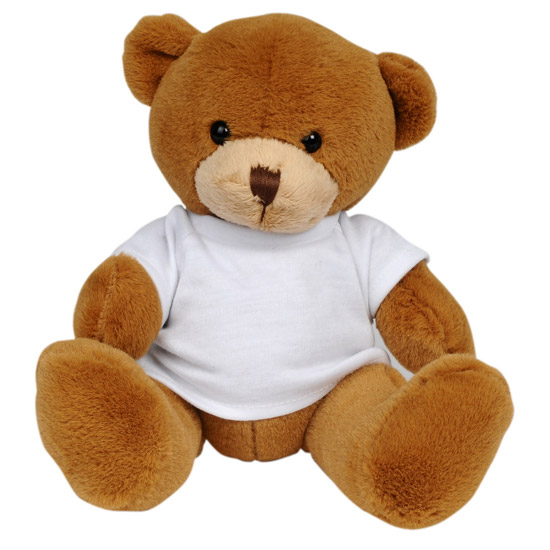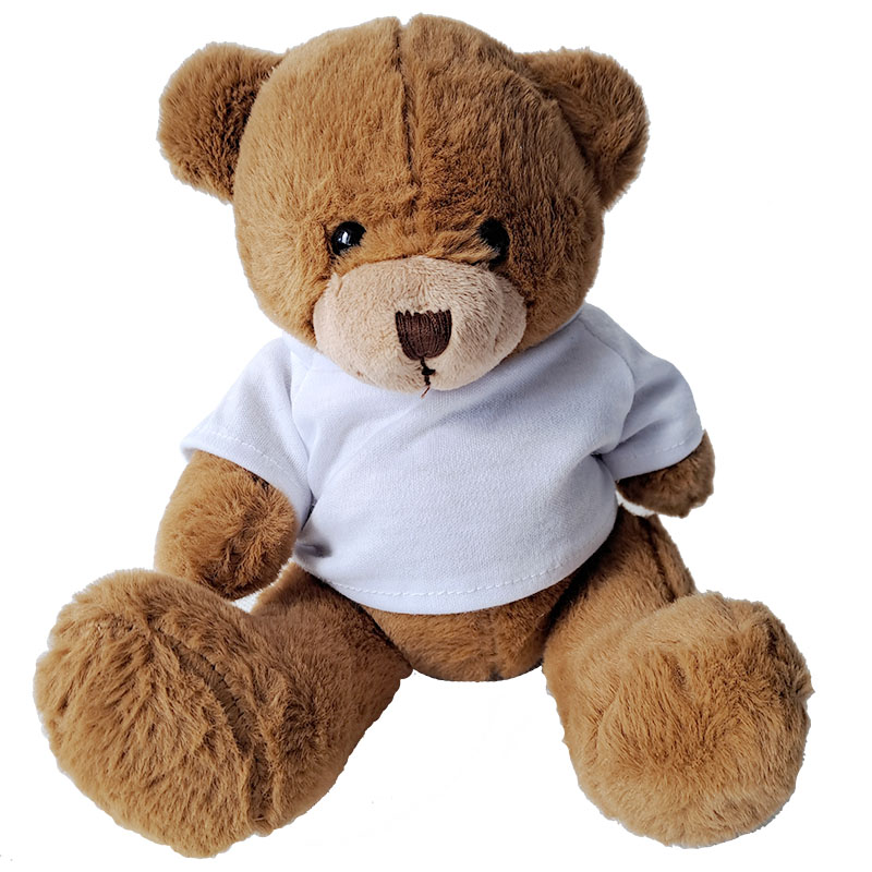 Brązowy-jasny pluszowy miś z białą koszulką do nadruku