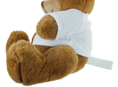 • Przytulanka ma założoną białą bluzkę z poliestru - ten element, dzięki obecności włókien poliestrowych, jest przystosowany do znakowania w technice sublimacji