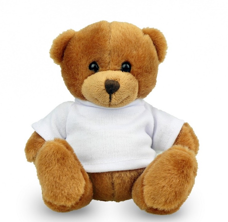 Brązowy pluszowy miś z białą koszulką do sublimacji