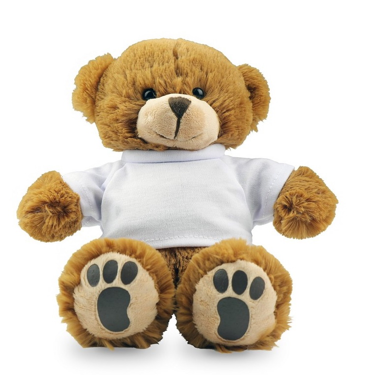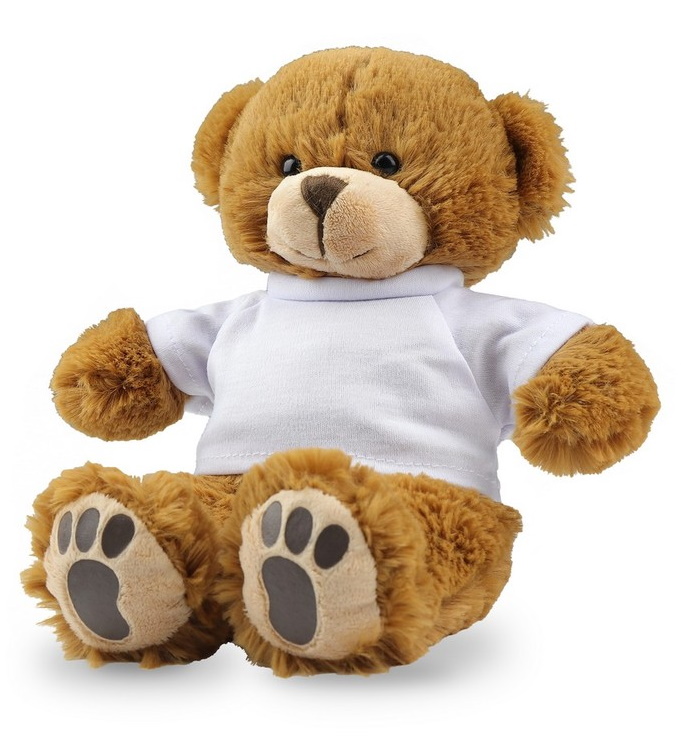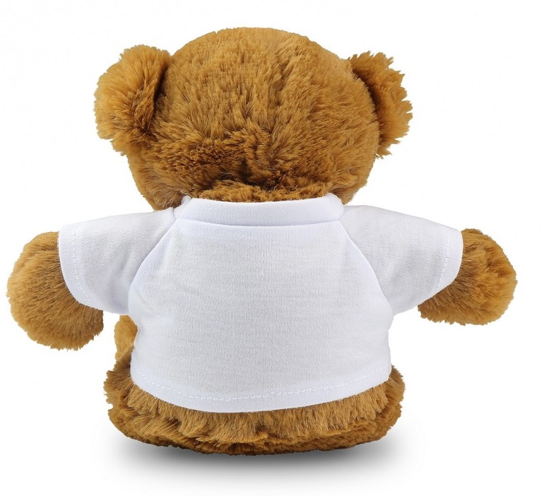 Brązowy pluszowy miś z białą koszulką do sublimacji