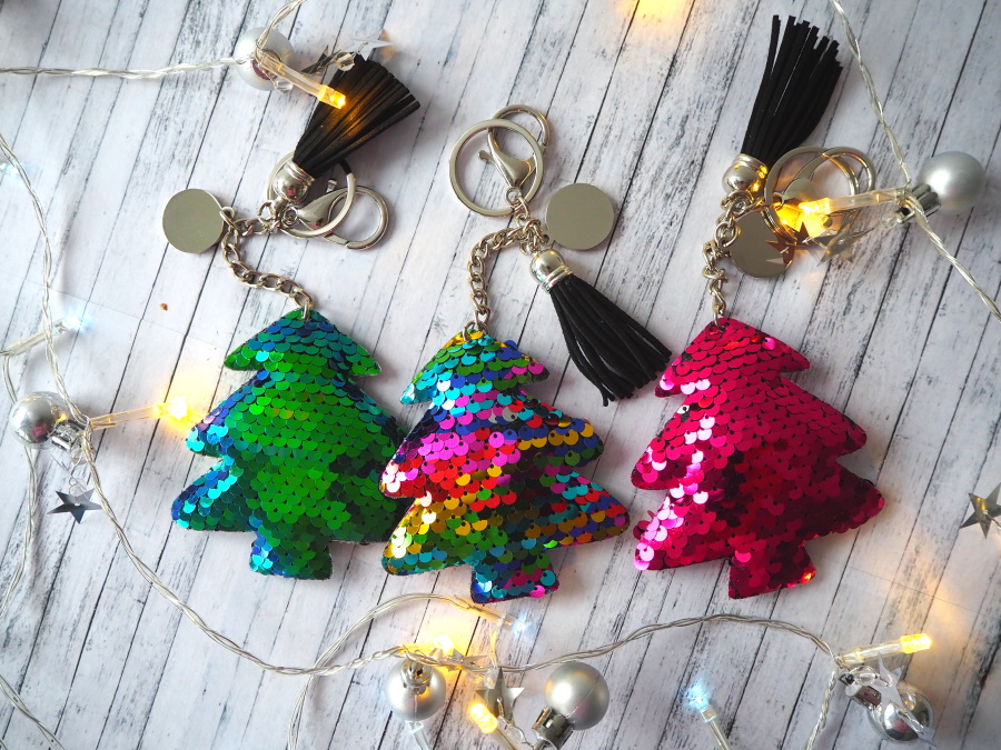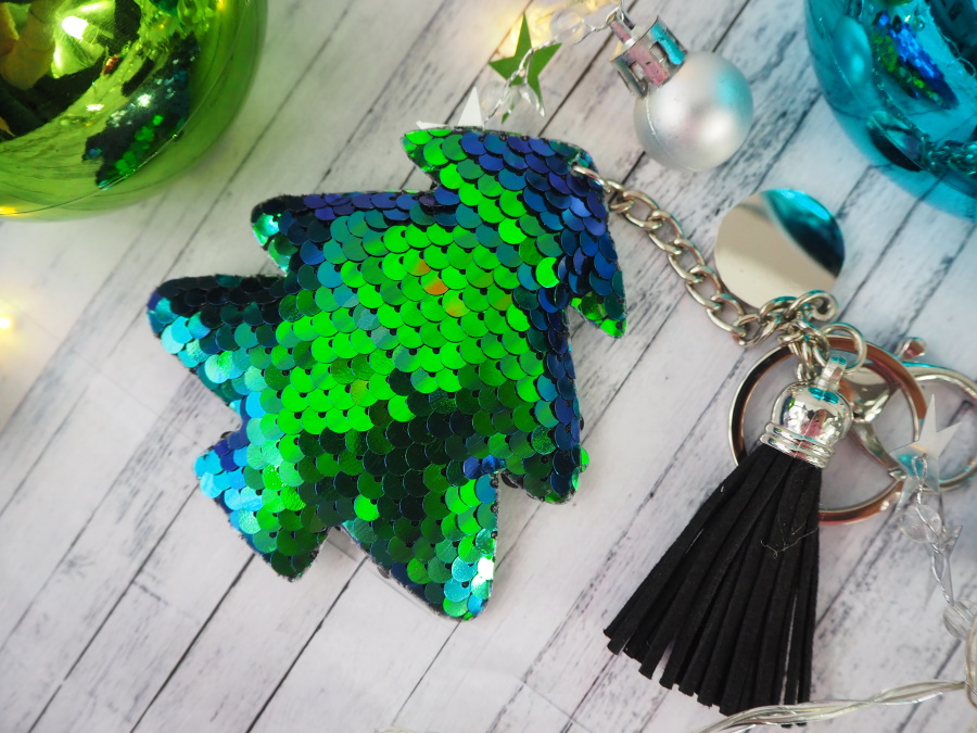 Brelok cekinowy z kółkiem do sublimacji - choinka