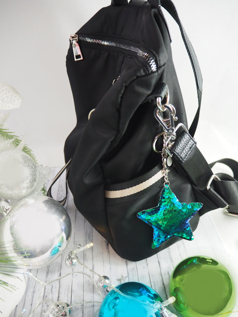 • Połyskująca zawieszka w kształcie choinki świetnie sprawdzi się zarówno jako przywieszka do plecaka szkolnego, damskiej torebki, czy modnych jeansów.