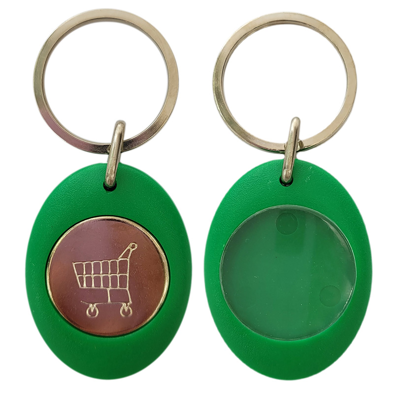 Zielony brelok na zdjęcie do samodzielnego wykonania z żetonem do wózków zakupowych