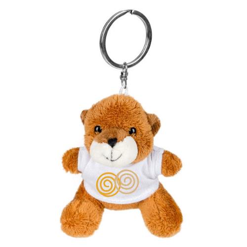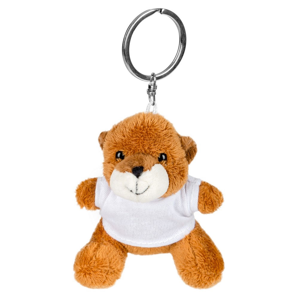 • Brelok z pluszowym zwierzakiem ma założoną białą bluzkę z poliestru - ten element, dzięki obecności włókien poliestrowych, jest przystosowany do znakowania w technice sublimacji