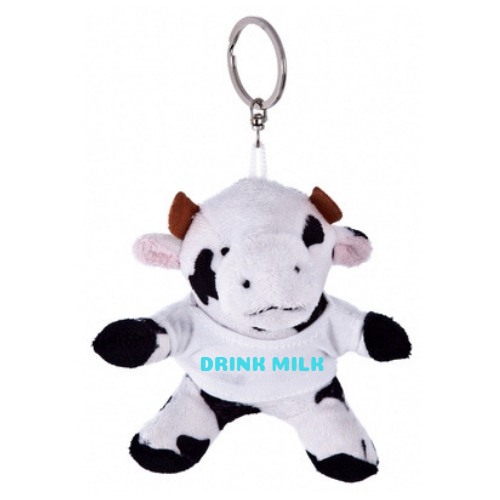 • Breloczek - pluszowa krowa z białą koszulką do nadruku
