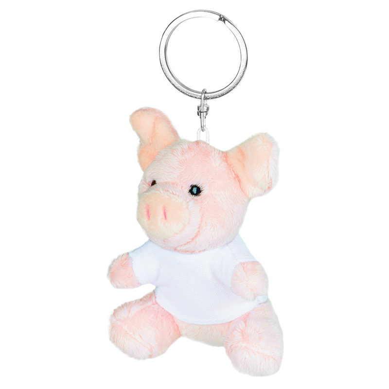 • Brelok z pluszowym zwierzakiem ma założoną białą bluzkę z poliestru - ten element, dzięki obecności włókien poliestrowych, jest przystosowany do znakowania w technice sublimacji