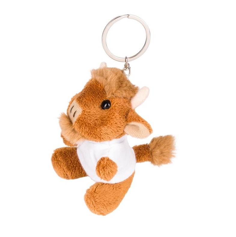• Brelok z pluszowym zwierzakiem ma założoną białą bluzkę z poliestru - ten element, dzięki obecności włókien poliestrowych, jest przystosowany do znakowania w technice sublimacji