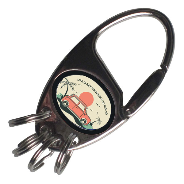• Brelok - karabińczyk jest zaopatrzony w standardowe metalowe kółeczka, dzięki którym łatwo dołożyć nowy kluczyk albo zdjąć niepotrzebny