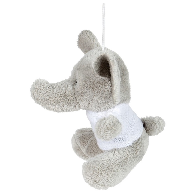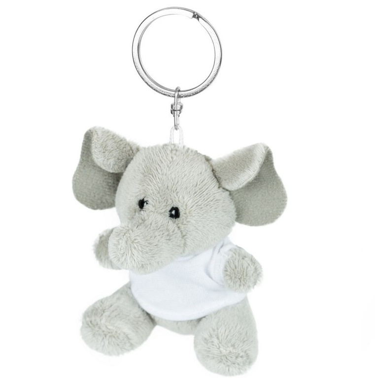 • Brelok z pluszowym zwierzakiem ma założoną białą bluzkę z poliestru - ten element, dzięki obecności włókien poliestrowych, jest przystosowany do znakowania w technice sublimacji