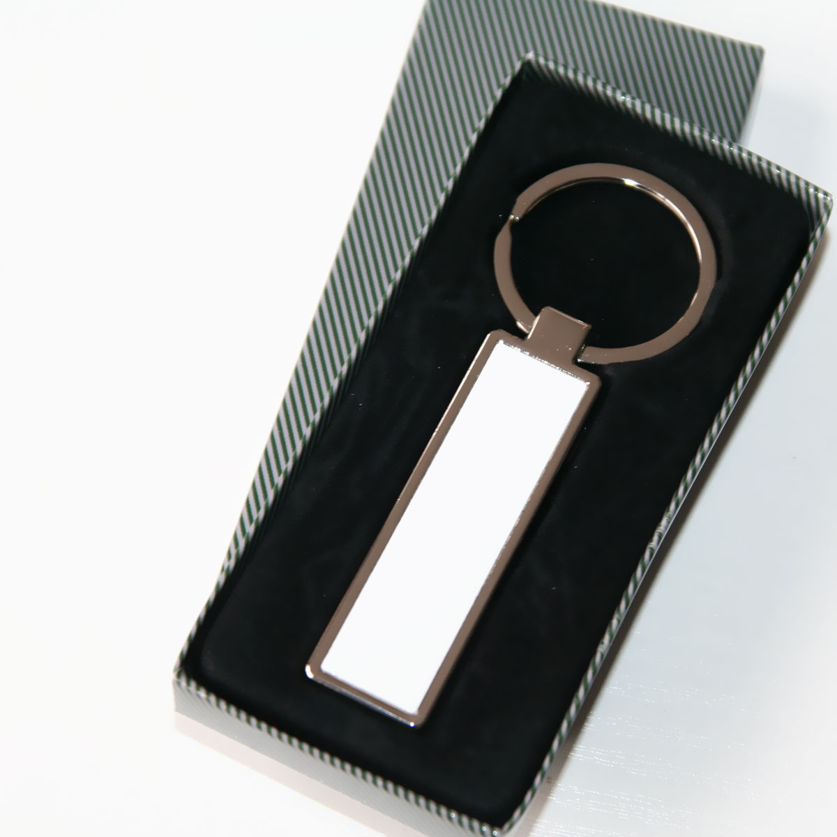 • Srebrny, metalowy brelok do kluczy do nadruku metodą sublimacji lub graweru laserowego