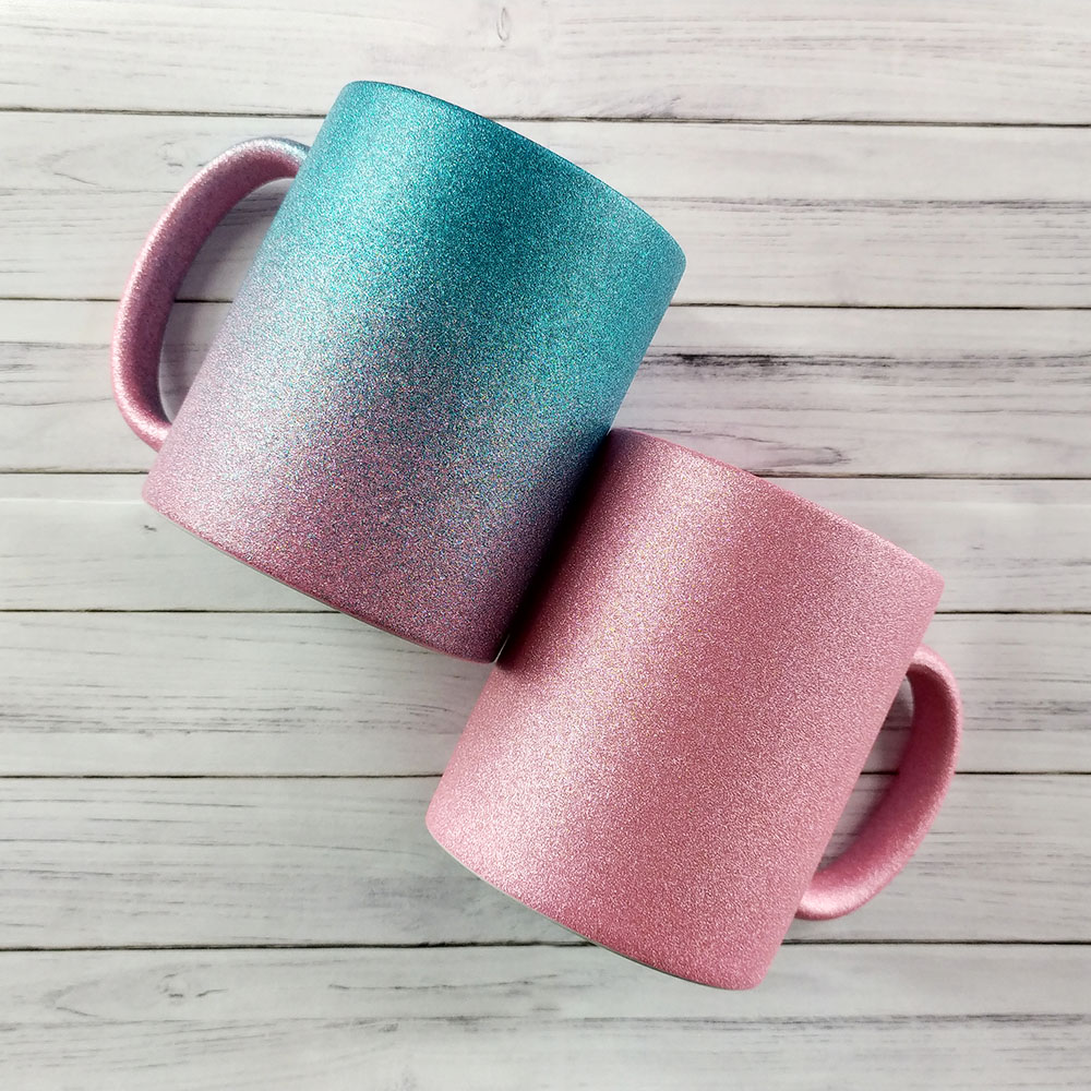 • Brokatowy, matowy kubek do sublimacji z białym wnętrzem i dużym, kolorowym uchem