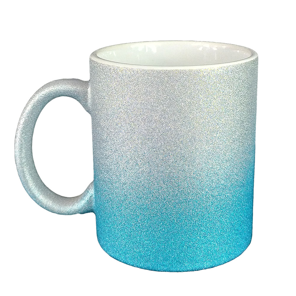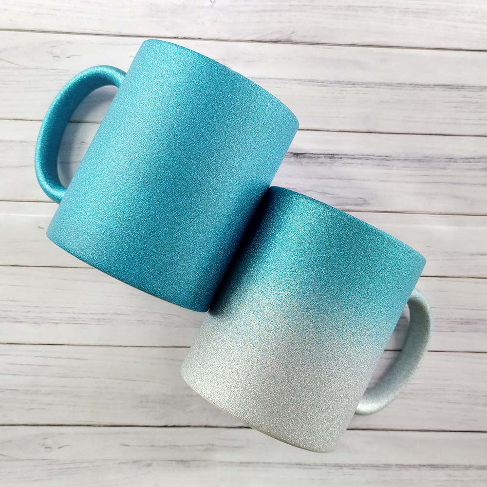 Srebrno-niebieski, brokatowy kubek ombre do wykonywania nadruków
