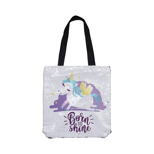 • Torba zakupowa do zadruku z wygodnymi uszami jest wykonana po jednej stronie z płótna poliestrowego, druga strona to dwustronne cekiny