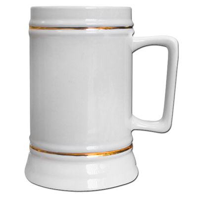 • Wysoki kufelek porcelanowy do piwa ze złotymi paskami wygląda masywnie i elegancko