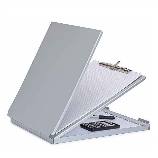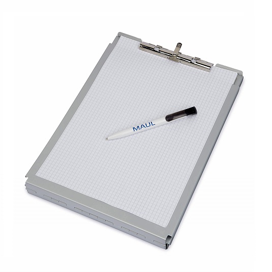 Sprostać tym wymaganiom może jedynie narzędzie najlepszej jakości, którą oferuje niemiecka firma MAUL - producent wysokiej klasy profesjonalnego wyposażenia biur, szkół i gabinetów. Clipboard z linii MAULcase jest wykonany z aluminium anodowanego - wytrzymałego materiału, który gwarantuje długą eksploatację sprzętu. Clipboard MAULcase to jednocześnie podkładka do pisania oraz sprytne pudełko do przechowywania dokumentów - pod plecami znajduje się otwierana skrytka na różne drobiazgi. Z łatwością pomieści potrzebne dokumenty, długopisy, kalkulator i inne przybory. Clipboard ze schowkiem chroni dokumenty przed zabrudzeniem i wzrokiem postronnych osób oraz trzyma notatki, ankiety i inne potrzebne papier zawsze pod ręką.