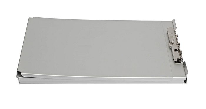 • Srebrny clipboard z aluminium prezentuje się gustownie i oryginalnie, odznacza go nieprzesadzony i nowoczesny design