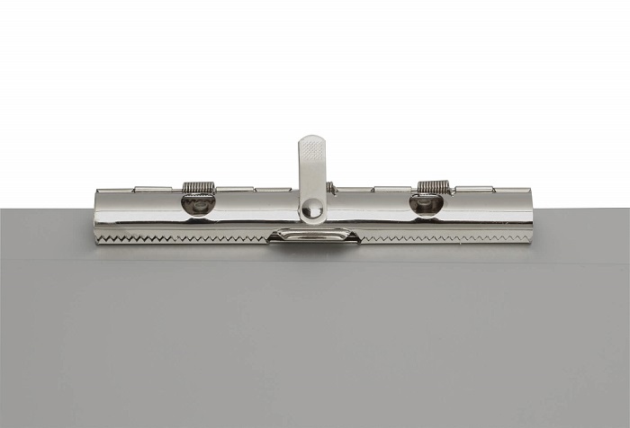 • Gustowna, elegancka podkładka na krótszej krawędzi ma zainstalowany metalowy klips do spinania kartek, który rozwiera się na max. 0,8 cm
