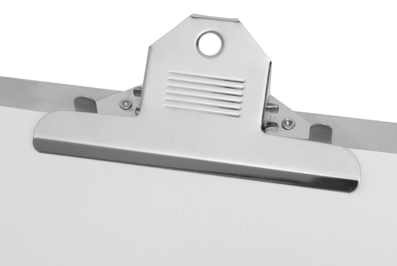 • Metalowa powierzchnia deski jest bardzo łatwa do utrzymania w czystości, dzięki czemu clipboard może być używany w każdych warunkach bez obaw o trwałe zabrudzenie
