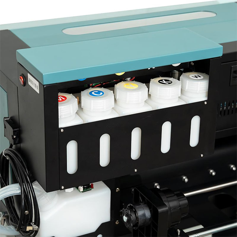 • System recyrkulacji tuszu, mieszadło białego tuszu i dodatkowe filtrowanie w tłumikach