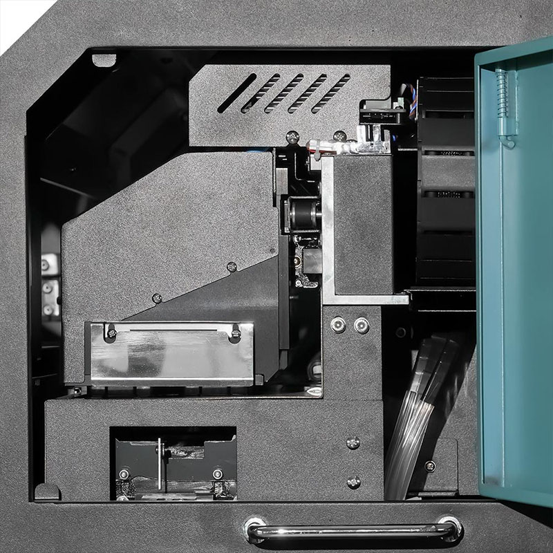 • Górne okno i oświetlenie wewnętrzne: umożliwiają weryfikację jakości druku w czasie rzeczywistym