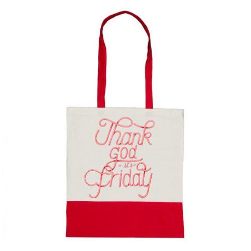 • Kremowa torba na zakupy do nadruku z czerwonym wykończeniem o wymiarach 38 x 42 cm