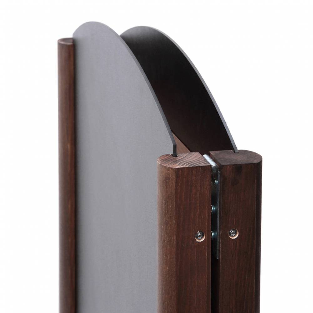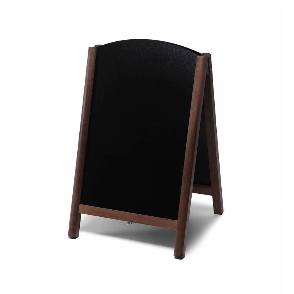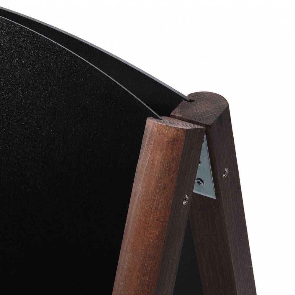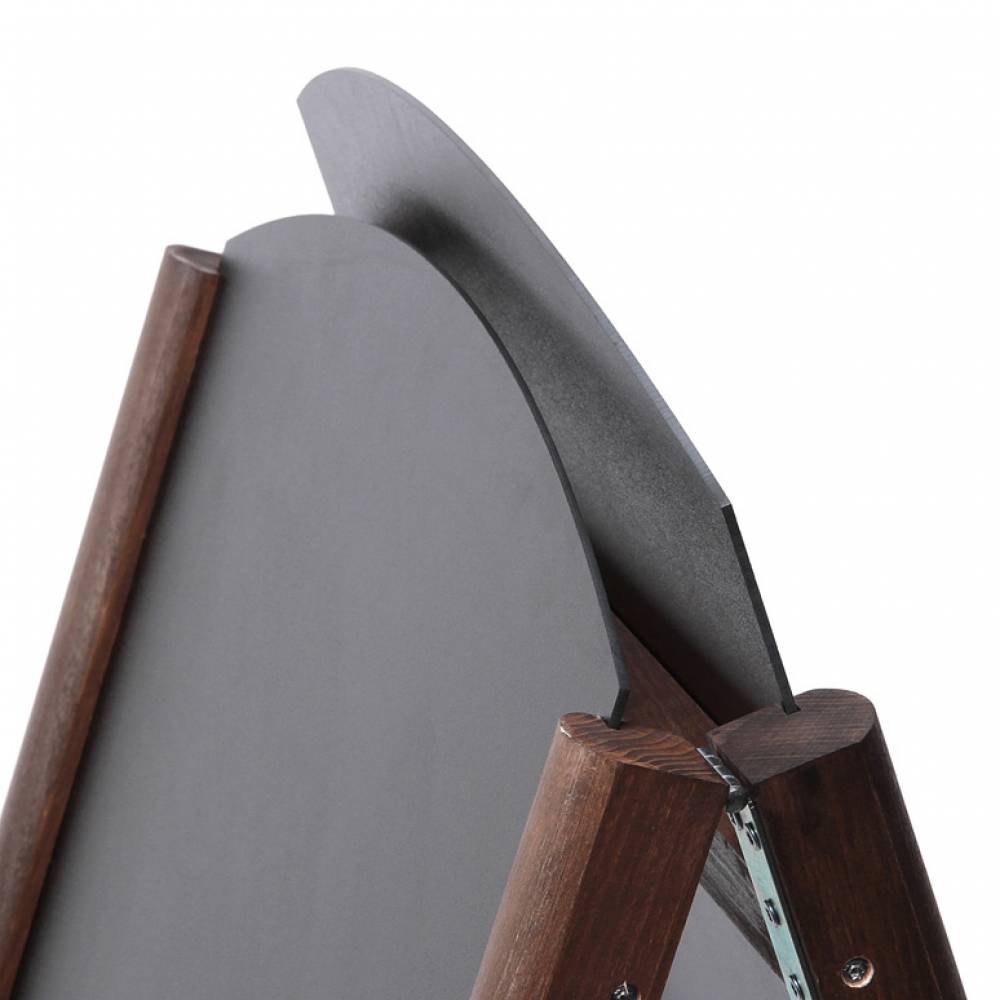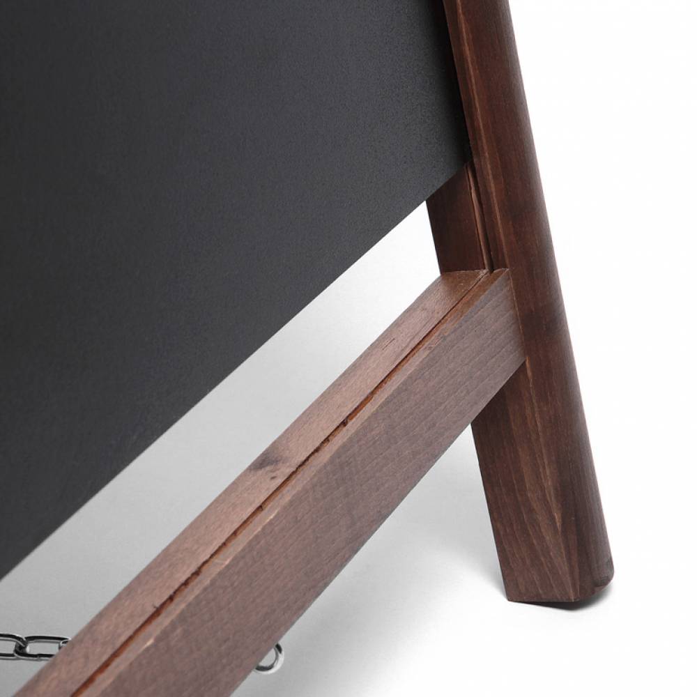 • Dwustronny stojak reklamowy składa się z dwóch tablic kredowych połączonych ze sobą drewnianą ramą i przymocowanych do drewnianych nóżek (całość przypomina kształtem literę A)