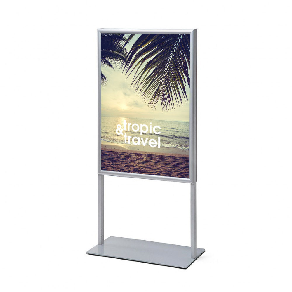 Eleganckie stojaki informacyjne z ramką zatrzaskową to nośnik reklamowy niezbędny do prezentowania treści w hotelach, bankach, biurach, urzędach czy salonach samochodowych. Stojące ekspozytory na plakaty odgrywają też nieocenioną rolę podczas różnego rodzaju konferencji, targów i szkoleń. Uniwersalny, nowoczesny design wzbogaci każde pomieszczenie.