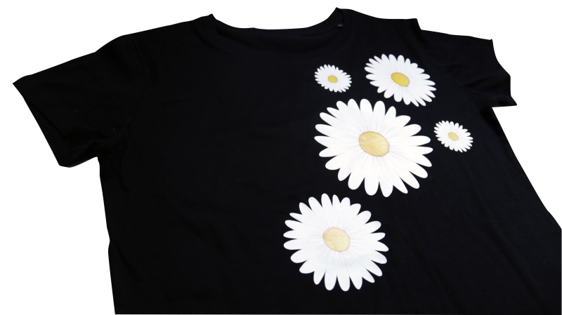 • Folia flex z nadrukiem solwentowym może być transferowana na bawełniane, poliestrowe i mieszane tekstylia w dowolnych kolorach (zarówno jasne i ciemne)