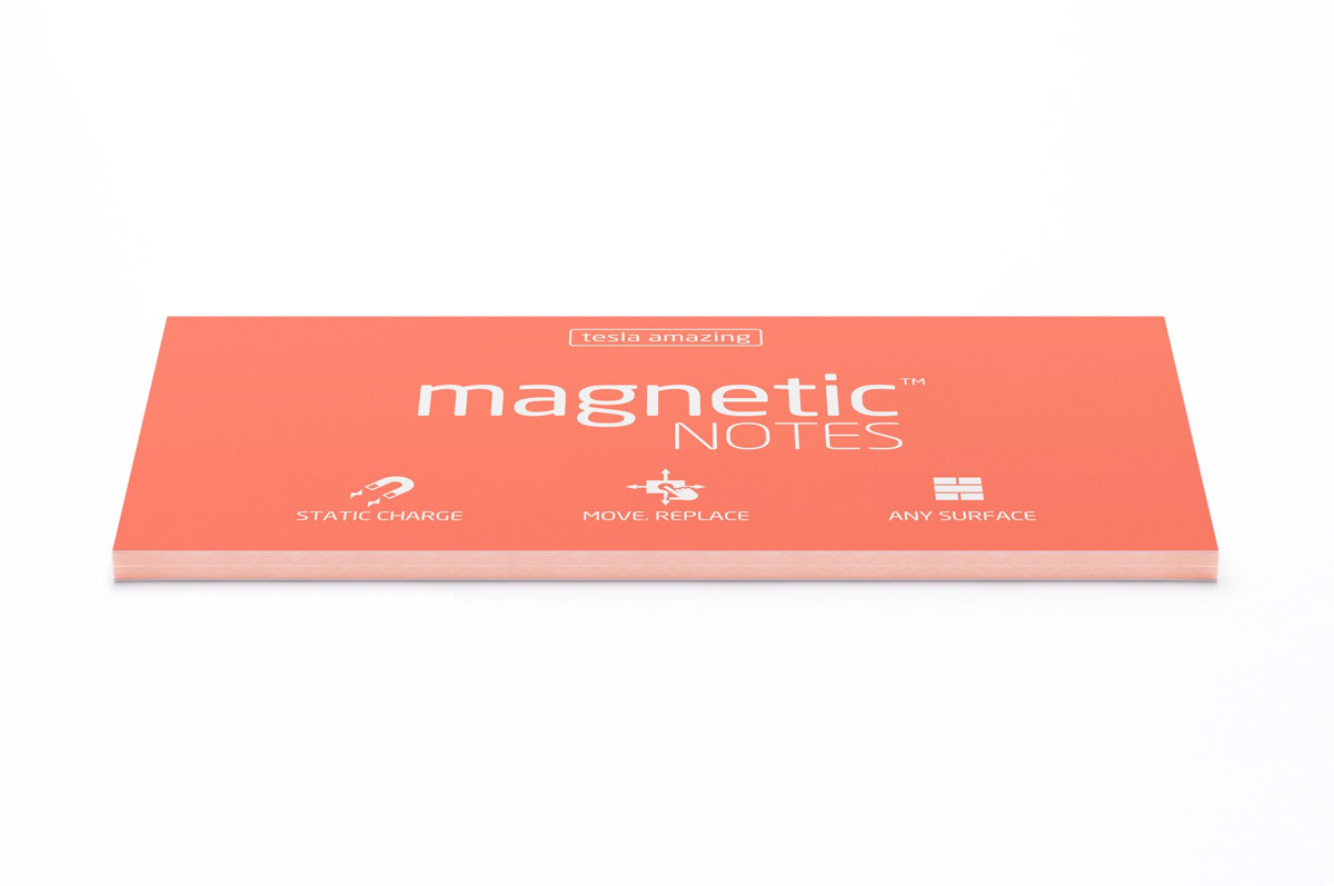Magnetic NOTES to pomoc biurowa na miarę XXI wieku. Innowacyjna, opatentowana technologia wykorzystuje fizyczne zjawisko oddziaływania elektrostatycznego pomiędzy ładunkami, które pozwala na przyleganie karteczek do wielu powierzchni bez użycia kleju, pinezek czy taśm.