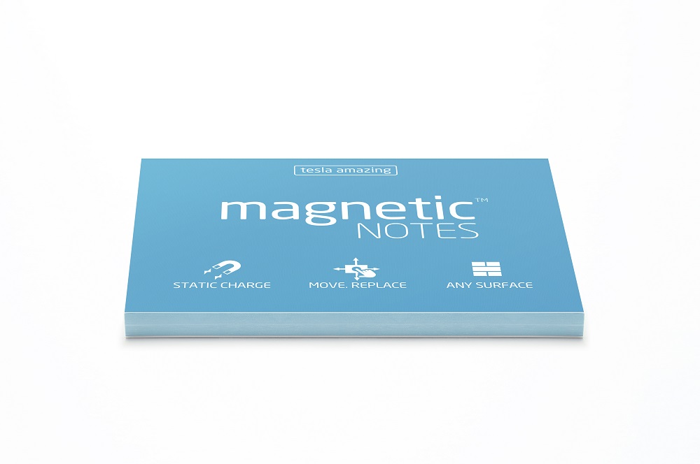 Magnetic NOTES to pomoc biurowa na miarę XXI wieku. Innowacyjna, opatentowana technologia wykorzystuje fizyczne zjawisko oddziaływania elektrostatycznego pomiędzy ładunkami, które pozwala na przyleganie karteczek do wielu powierzchni bez użycia kleju, pinezek czy taśm.