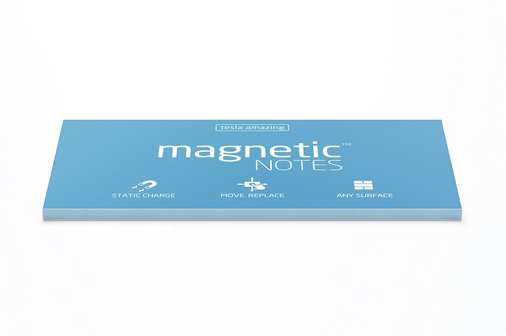 Magnetic NOTES to pomoc biurowa na miarę XXI wieku. Innowacyjna, opatentowana technologia wykorzystuje fizyczne zjawisko oddziaływania elektrostatycznego pomiędzy ładunkami, które pozwala na przyleganie karteczek do wielu powierzchni bez użycia kleju, pinezek czy taśm.