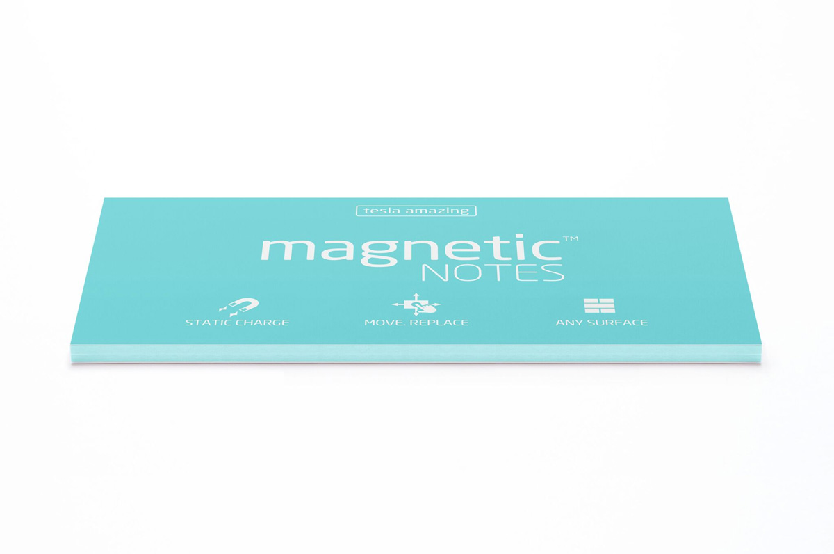 Magnetic NOTES to pomoc biurowa na miarę XXI wieku. Innowacyjna, opatentowana technologia wykorzystuje fizyczne zjawisko oddziaływania elektrostatycznego pomiędzy ładunkami, które pozwala na przyleganie karteczek do wielu powierzchni bez użycia kleju, pinezek czy taśm.